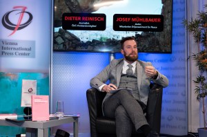 Josef Mühlbauer stellt das Buch Kritische Friedensforschung im österreichischen Journalisten Club vor