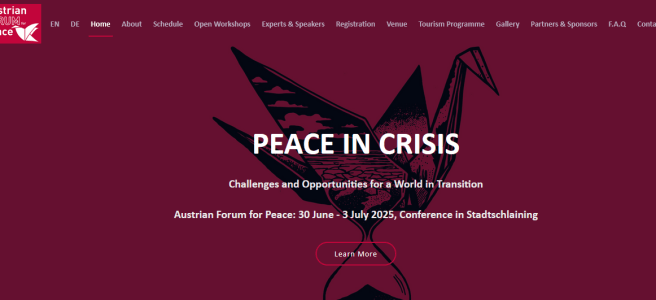Austrian Forum for Peace: 30. Juni – 3. Juli 2025, Konferenz auf der Friedensburg Schlaining