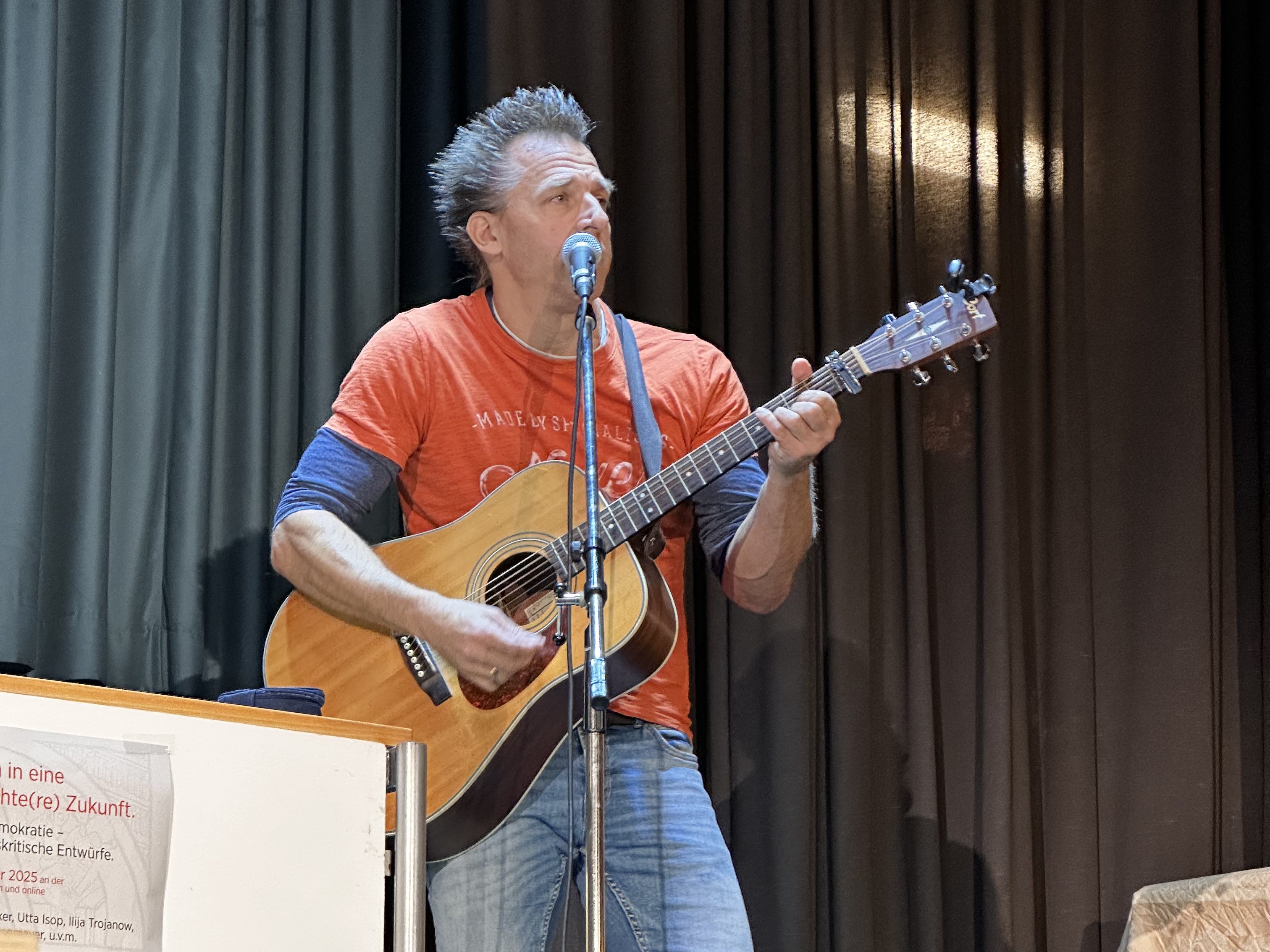 Ein weiterer großer Höhepunkt der Tagung war am Samstagabend der Auftritt des renommierten Liedermachers Konstantin Wecker, der nicht nur las, sondern auch mit dem Chor „Stimmsalat“ mitsang – ein emotional sehr bewegender Moment. Dieser Chor, Konstantin und die berührenden Geschichten haben nicht nur den Verstand sondern auch die Herzen der Zuseher:innen geöffnet und für die Themen Herrschafts, Macht und Wandel sensibilisiert.