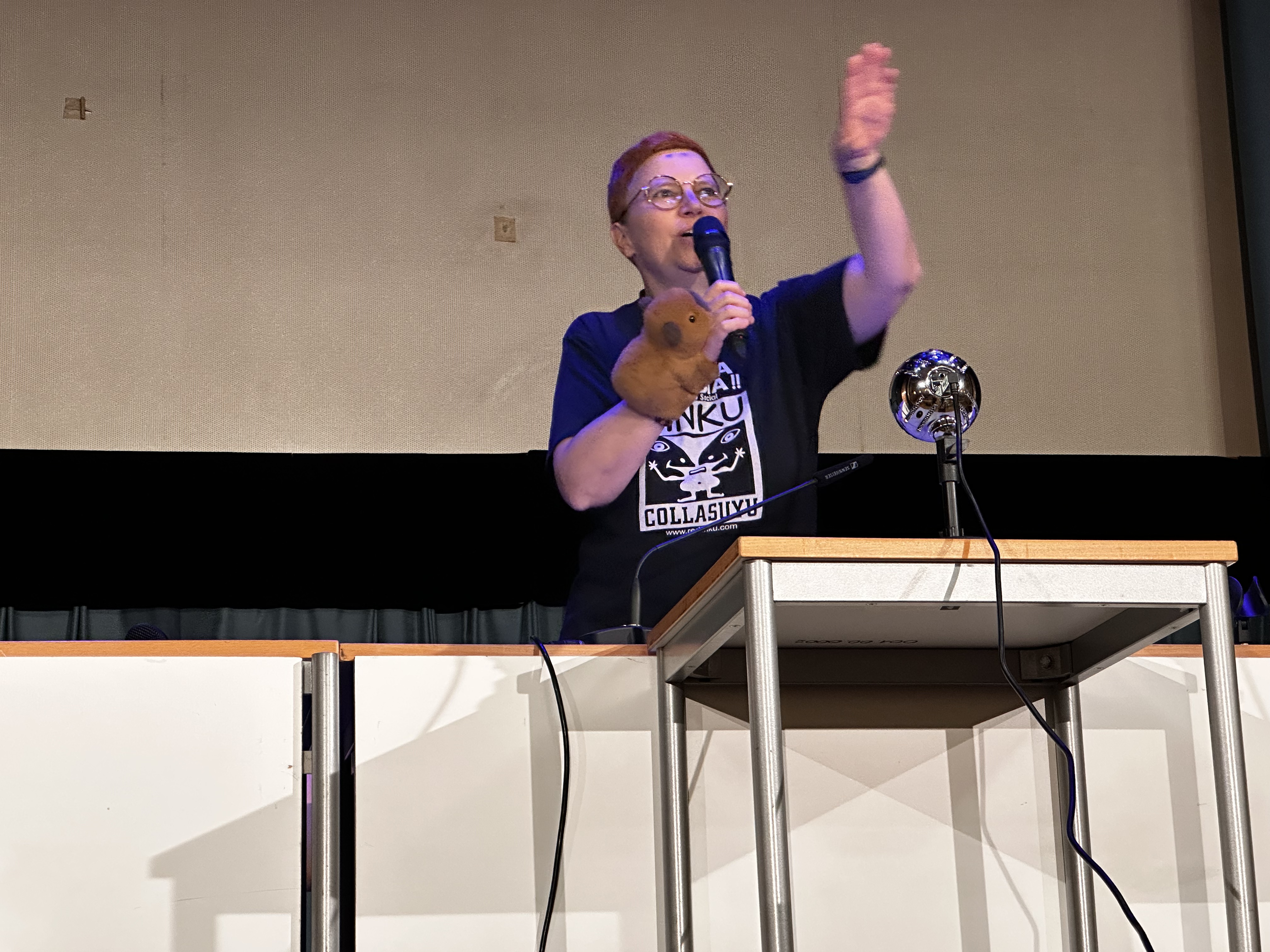 Der Samstag 4.10.2025 stand im Zeichen der direkten Aktion und des Bewusstseinswandels. Es ging darum ein kritisches Denken zu fördern, es auch darum im Geiste des Citizenship Education ein demokratischen Ethos und politische Partizipation zu stärken. Gerade in Zeiten autoritärer Wende ist diese Bildungsarbeit von großer Bedeutung. Neben Workshops zum „Theater der Unterdrückten“ und anarchistischem Antimilitarismus war das queer-feministische Panel ein zentraler Anziehungspunkt, das die Verbindungen zwischen Feminismus und sozial-ökologischer Gerechtigkeit herausarbeitete.