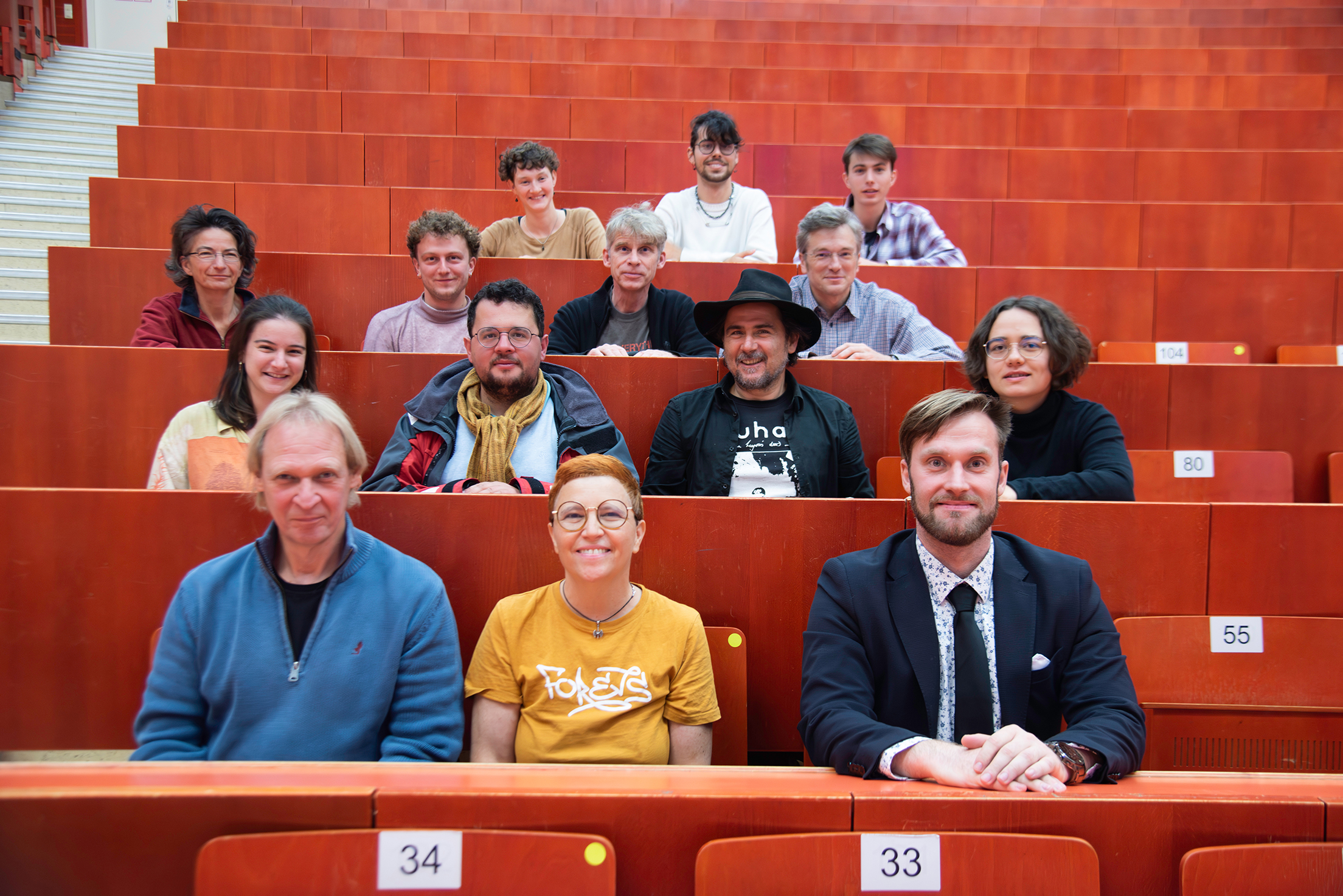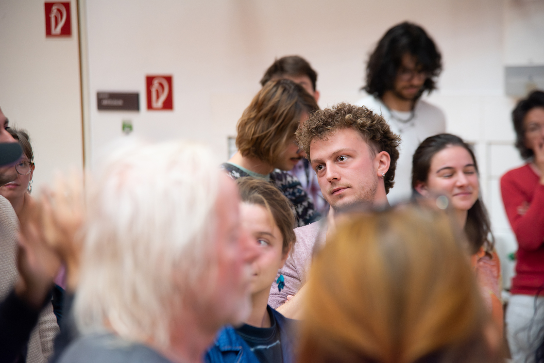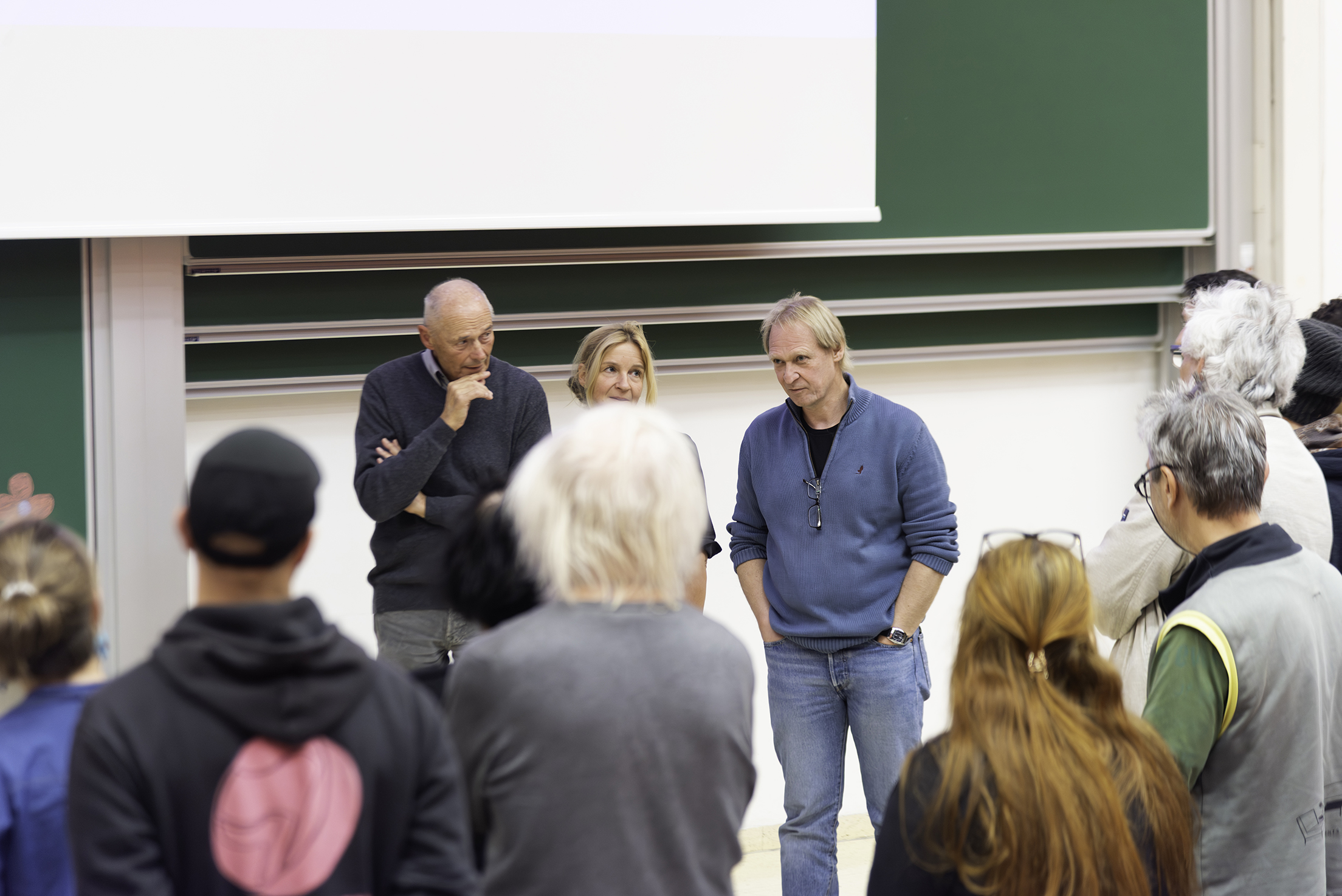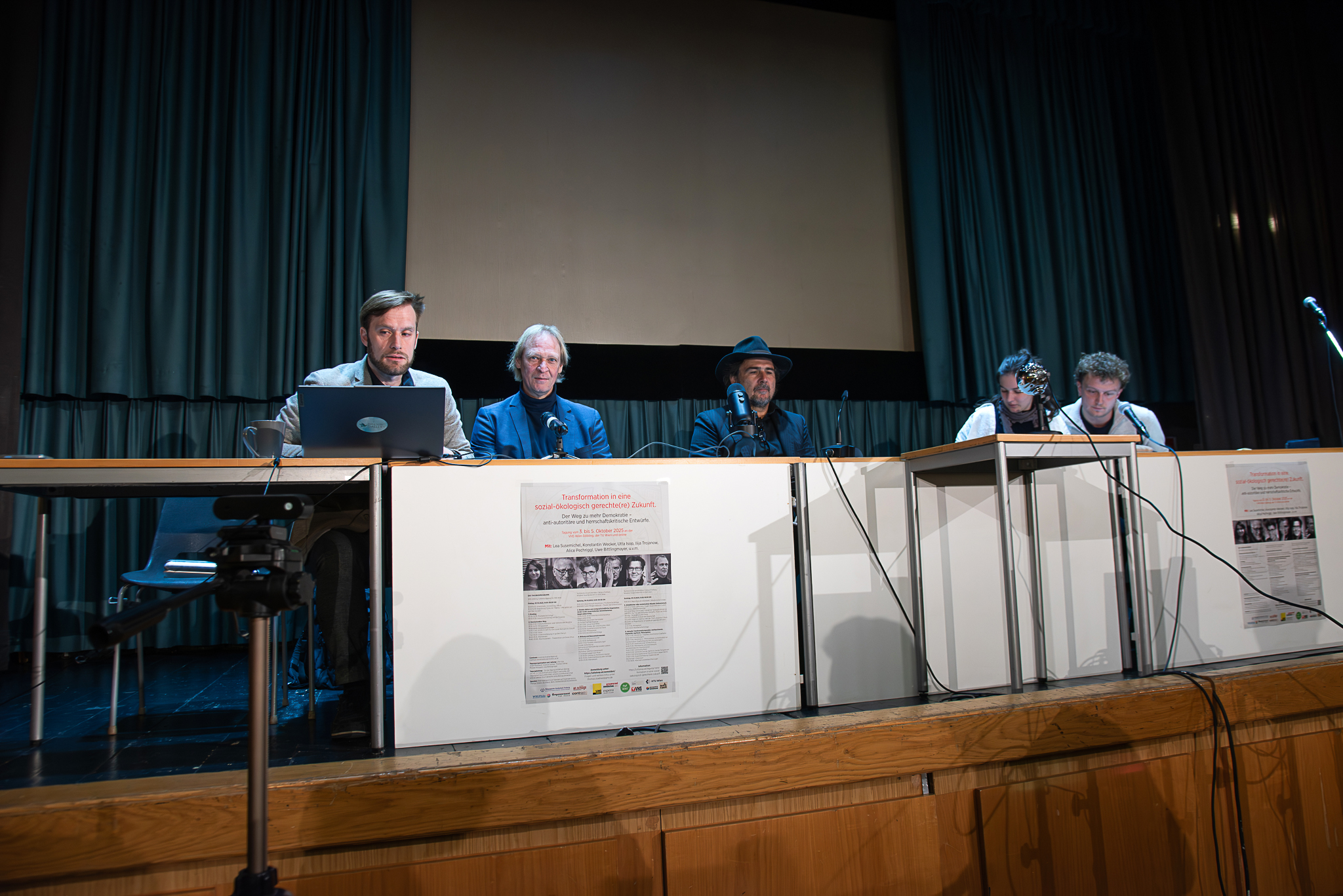 Es folgte eine hochkarätig besetzte Podiumsdiskussion zu revolutionären Wegen in eine sozial-ökologische gerechte Gesellschaft mit Bezug auf Denker wie Castoriadis, Marx und Bloch. Der Friedensforscher Josef Mühlbauer moderierte das Panel mit Prof. Uwe Bittlingmayer, Dr. Birge Krondorfer, Prof. Alice Pechriggl, Anna Rosenberg und Dr. Florian Telsnig (Festsaal der VHS Döbling).