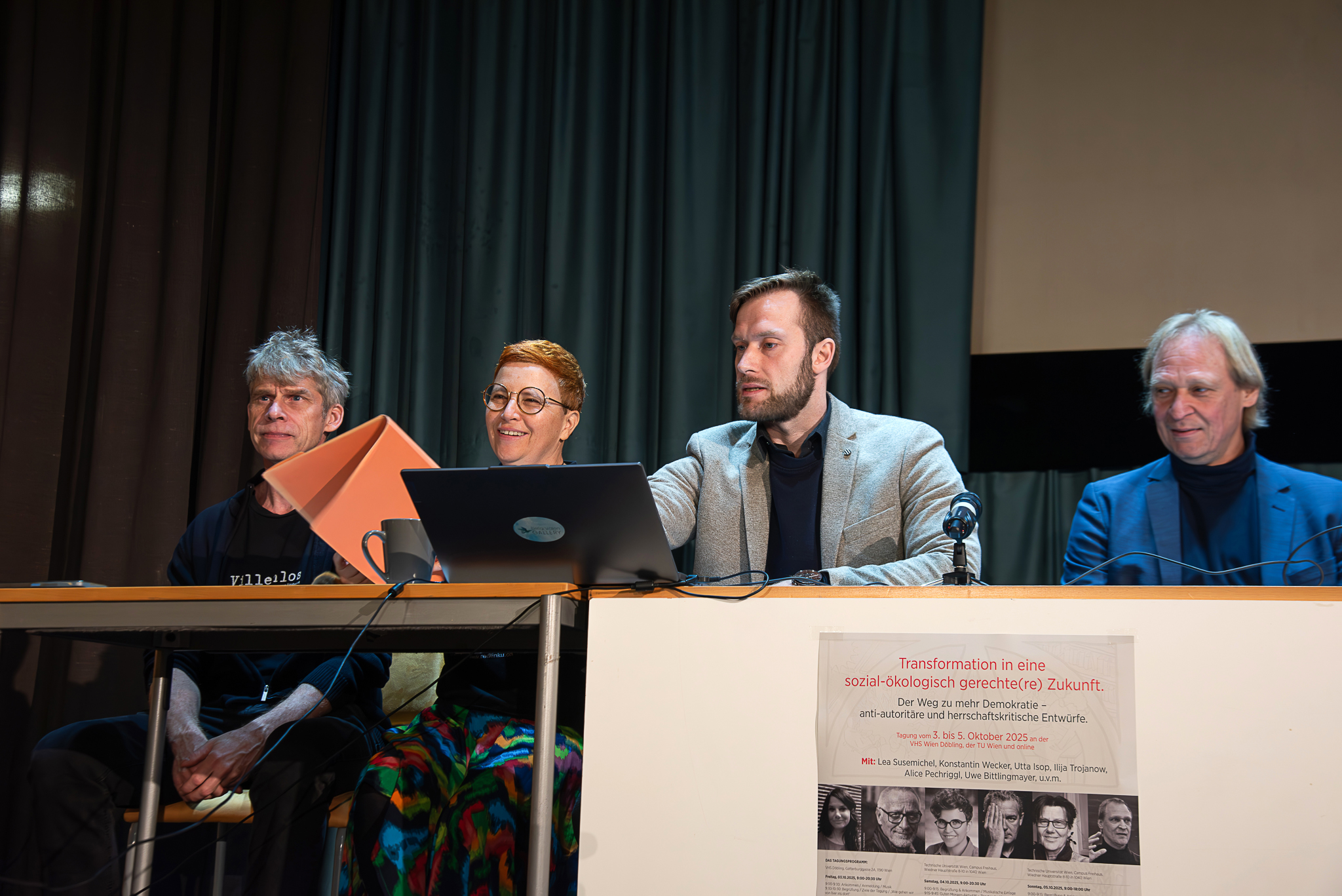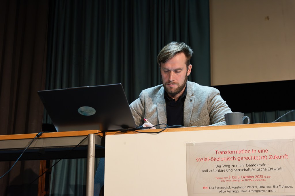 Vom 3. bis 5. Oktober 2025 fand die Tagung „Transformation in eine sozial-ökologisch gerechte(re) Zukunft. Der Weg zu mehr Demokratie – anti-autoritäre und herrschaftskritische Entwürfe“ zunächst in der VHS Döbling in Wien – dann in der TU Wien statt. Die dreitägige Veranstaltung bot ein außerordentlich dichtes und vielfältiges Programm, das Theorie und Praxis, Wissenschaft und Aktivismus miteinander verband.